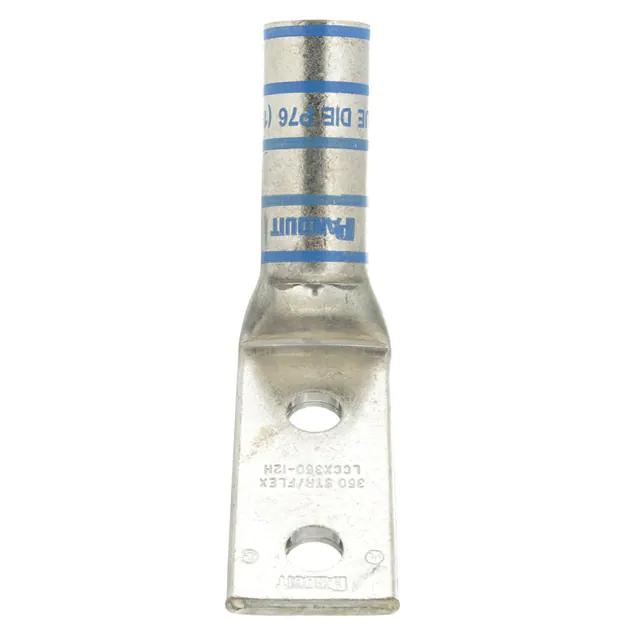 This is manufactured by Panduit Corp. The manufacturer part number is LCCX350-12H-6. It is assigned with possible HTSUS value of 8536.90.4000. The product is rohs3 compliant. Its outer edges are 1.540" (39.12mm) wide. The bespoke tab is 0.220" (5.59mm) thick. In addition, it is reach unaffected. The terminal is a rectangular tongue type. It is shipped in bulk. Moreover, the product has a wire gauge of 350mcm (kcmil). Furthermore, the product is galvanized with excellent electro-tin contact finishing. Its typical moisture sensitivity level is not applicable. The product features crimp, barrel termination style. The product consists of 1/2 stud. The product is available in free hanging (in-line), 45° angle configuration. It has a classic blue colour. The product pan-lug®, is a highly preferred choice for users. Features two stud holes terminals. Insulation Option: non-insulated. The product is made from sturdy copper materials. Moreover, it corresponds to lccx, a base product number of the product. The product is designated with the ear99 code number