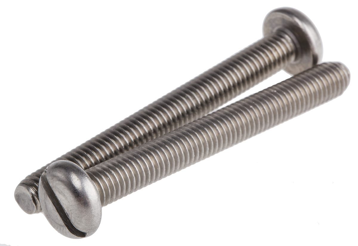 This is Slot Pan Head Machine Screw Stainless Steel A2 304 M5 x 45mm manufactured by RS Pro. The manufacturer part number is 914-1595. The product features a slot drive. The product is made from highly stable and reliable stainless steel.