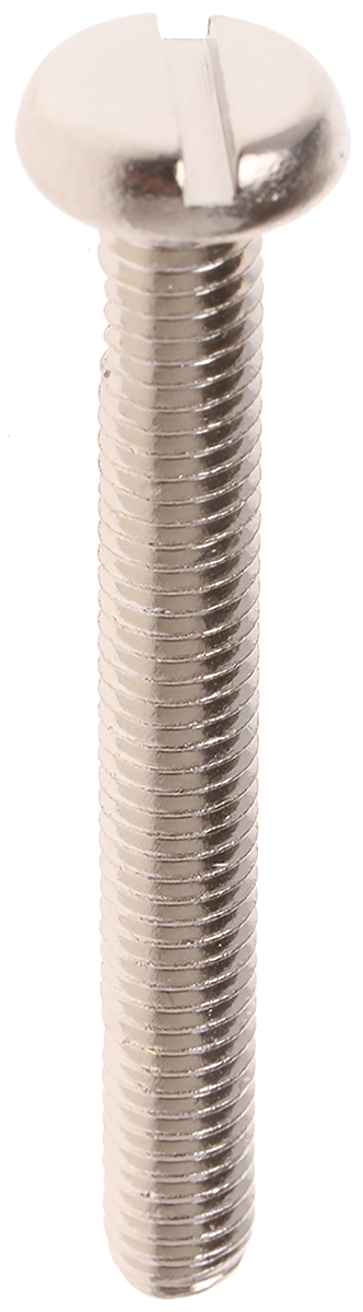 This is Slot Pan Head Machine Screw Brass Nickel Plated M5 x 40mm manufactured by RS Pro. The manufacturer part number is 482-8795. A quality product with a nice nickel plated finish. The product features a slot drive. The product is made from highly stable and reliable brass.