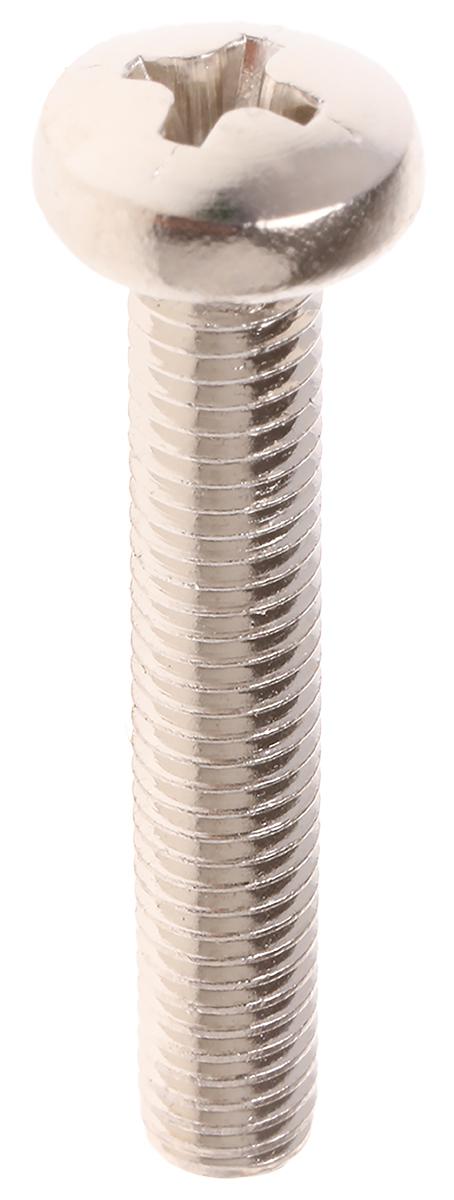 This is Cross Pan Head Machine Screw Brass Nickel Plated M5 30mm manufactured by RS Pro. The manufacturer part number is 483-0293. A quality product with a nice nickel plated finish. The product features a cross drive. The product is made from highly stable and reliable brass.