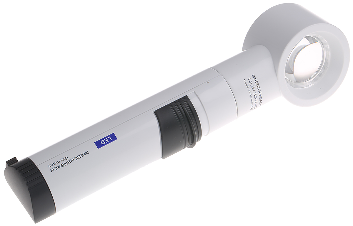 This is Illuminated Pocket Magnifying Glass 12.5 x Magnification 35mm diameter manufactured by Eschenbach. The manufacturer part number is 155774. It comes in stand magnifier configuration.