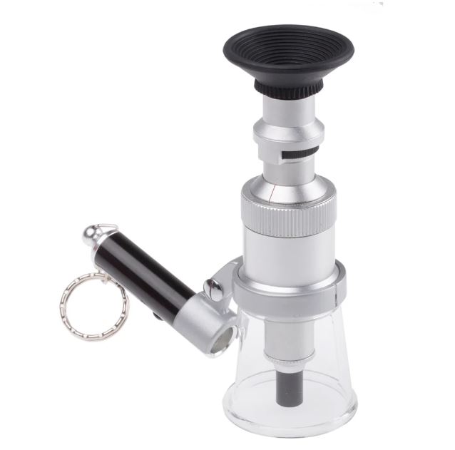 This is Illuminated Pocket Microscope 100 x Magnification manufactured by RS Pro. The manufacturer part number is 683-0850. It comes in pocket microscope configuration.