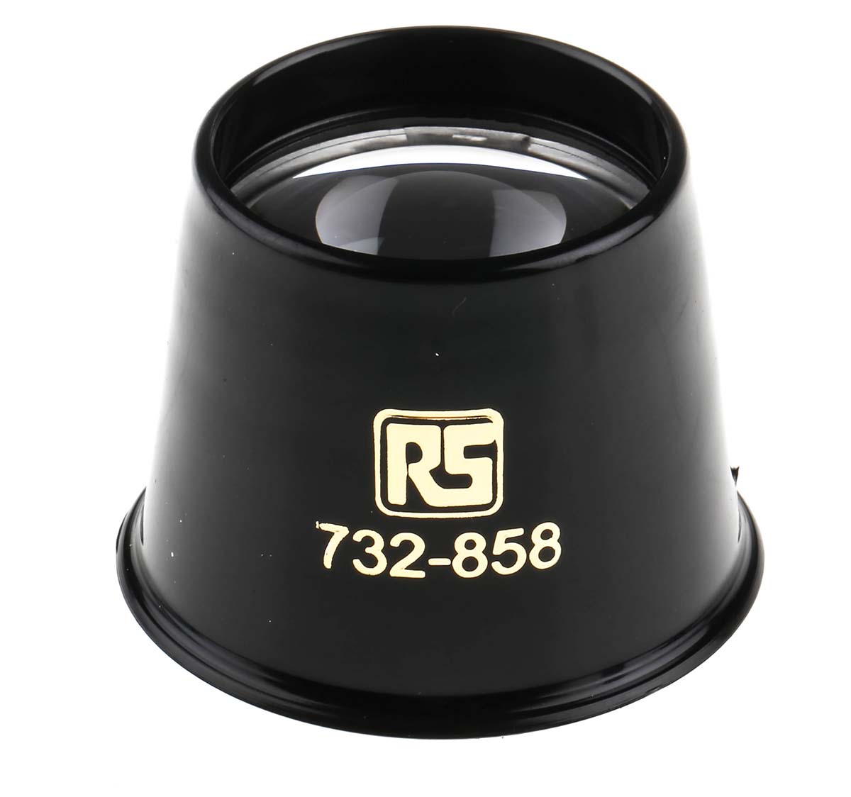This is Pocket Magnifying Glass 20 x Magnification 26mm diameter manufactured by RS Pro. The manufacturer part number is 732-858. It comes in bi-aspheric eye magnifier configuration.