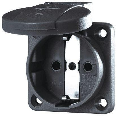 This is Europe Mains Connector Type F - German Schuko 16A Panel Mount 230 V manufactured by Mennekes. The manufacturer part number is 11012. The product has a current rating of 16a. The product is available in panel mount configuration. Moreover, the product has a nominal 230 v voltage rating. In addition, female is the available "Gender" of the product. The product's body is nicely designed from thermoplastic materials.