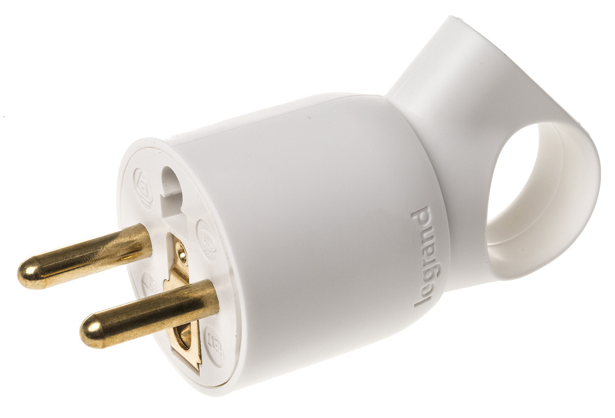 This is French Mains Plug Type E 16A Cable Mount 250 V ac manufactured by Legrand. The manufacturer part number is 0 504 20. The product has a current rating of 16a. The product is available in cable mount configuration. Moreover, the product has a nominal 250 v voltage rating. In addition, male is the available "Gender" of the product. The product's body is nicely designed from polymer materials.