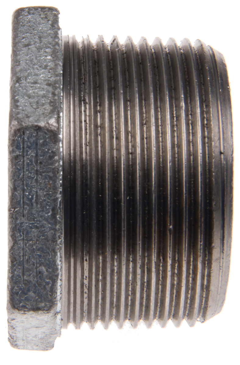 This is Malleable Iron Fitting Reducer Bush 1-1/2 in BSPT Male (Connection 1) 1 in BSPP Female (Connection 2) manufactured by Georg Fischer. The manufacturer part number is 770241235. A quality product with a nice galvanised finish.