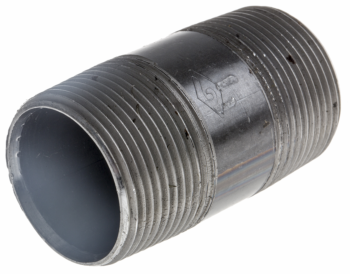 This is Malleable Iron Fitting Barrel Nipple 1-1/4 in BSPT Male (Connection 1) 1-1/4 in BSPT Male (Connection 2) manufactured by RS Pro. The manufacturer part number is 257-7934. A quality product with a nice black finish.