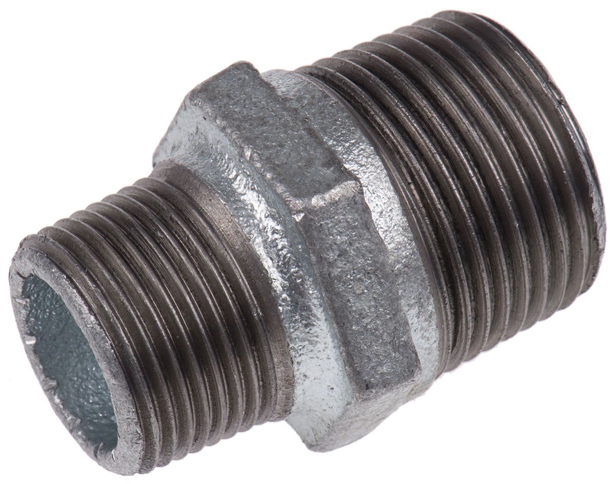 This is Malleable Iron Fitting Reducer Hexagon Nipple 1 in BSPT Male (Connection 1) manufactured by Georg Fischer. The manufacturer part number is 770245224. A quality product with a nice galvanised finish.