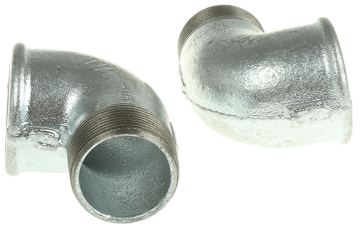 This is Malleable Iron Fitting Elbow 1-1/2 in BSP Male (Connection 1) 1-1/2 in BSP Female (Connection 2) manufactured by Georg Fischer. The manufacturer part number is 770092208. A quality product with a nice galvanised finish.