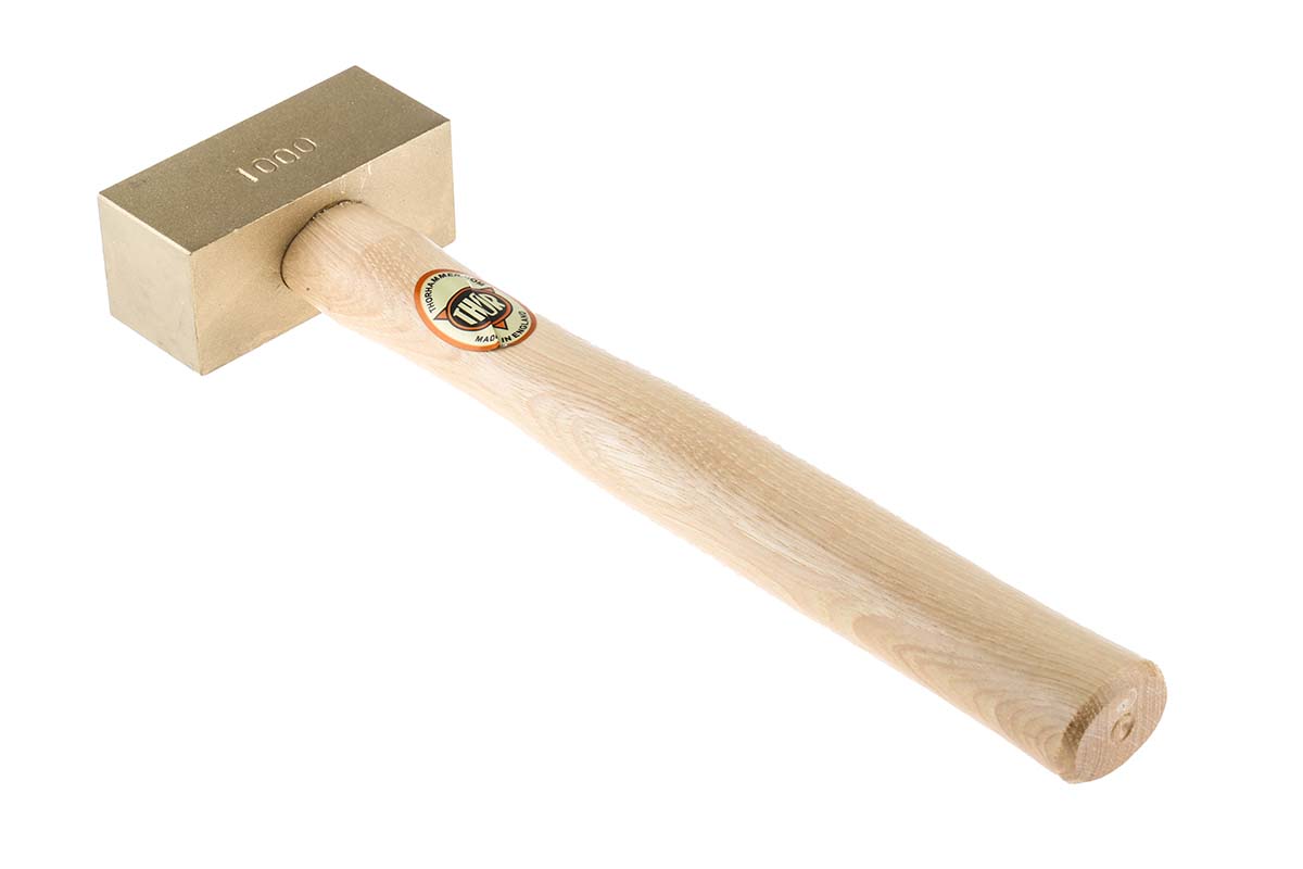 This is 1000g Square Brass Mallet manufactured by RS Pro. The manufacturer part number is 381-4795. The diameter of the head is [Head diameter]. The typical product's weight is 1kg.
