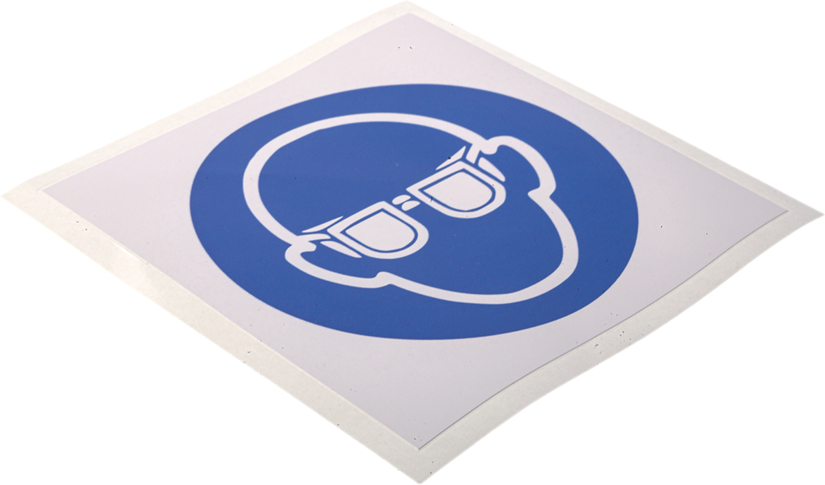 This is Vinyl Mandatory Eye Protection Sign with Pictogram Only 100 x 100mm manufactured by RS Pro. The manufacturer part number is 813-4479. The product is made from highly stable and reliable vinyl. In addition, the height is 100 mm. Furthermore, the product is 100mm wide.