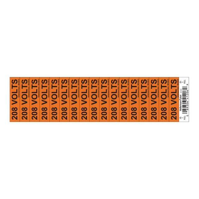 This is manufactured by HellermannTyton. The manufacturer part number is 596-00933. It is assigned with possible HTSUS value of 3919.10.2055. It is shipped in bulk. It has a classic orange, black colour. The product is made from highly stable and reliable vinyl. Its typical moisture sensitivity level is not applicable. The product has -40°c ~ 80°c operating temperature range. It has a long 4 weeks standard lead time. The product is designated with the ear99 code number It comes in wire marker, adhesive configuration. Legend Information: 208 volts. Moreover, it corresponds to 596-00, a base product number of the product. The product is available in 2.25" w x 0.50" l (57.1mm x 12.7mm) size.