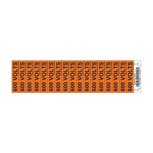 This is manufactured by HellermannTyton. The manufacturer part number is 596-00953. It is assigned with possible HTSUS value of 3919.10.2055. It is shipped in bulk. It has a classic orange, black colour. The product is made from highly stable and reliable vinyl. Its typical moisture sensitivity level is not applicable. The product has -40°c ~ 80°c operating temperature range. It has a long 4 weeks standard lead time. The product is designated with the ear99 code number It comes in wire marker, adhesive configuration. Legend Information: 600 volts. Moreover, it corresponds to 596-00, a base product number of the product. The product is available in 2.25" w x 0.50" l (57.1mm x 12.7mm) size.