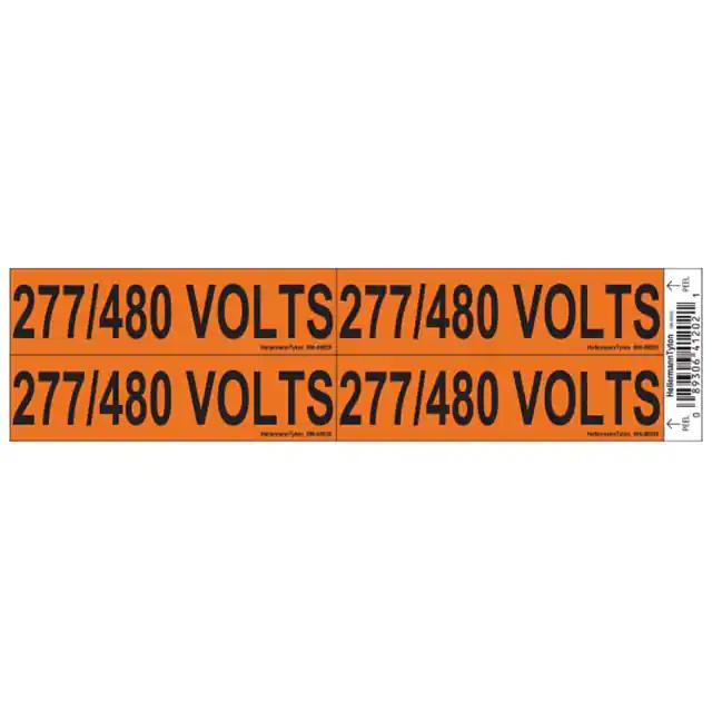 This is manufactured by HellermannTyton. The manufacturer part number is 596-00939. It is assigned with possible HTSUS value of 3919.10.2055. It is shipped in bulk. It has a classic orange, black colour. The product is made from highly stable and reliable vinyl. Its typical moisture sensitivity level is not applicable. The product has -40°c ~ 80°c operating temperature range. It has a long 4 weeks standard lead time. The product is designated with the ear99 code number It comes in wire marker, adhesive configuration. Legend Information: 277/480 volts. Moreover, it corresponds to 596-00, a base product number of the product. The product is available in 4.25" w x 1.13" l (108.0mm x 28.6mm) size.