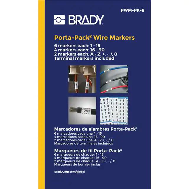 This is manufactured by Brady Corporation. The manufacturer part number is PWM-PK-8. It is assigned with possible HTSUS value of 5906.99.1000. The product is rohs3 compliant. The product has -40°c ~ 80°c operating temperature range. It comes in wire marker, book (perforated) configuration. The product is made from highly stable and reliable cloth. In addition, it is reach unaffected. Legend Information: a-z, 0-90, +, - , /. It is shipped in bulk. Its typical moisture sensitivity level is not applicable. It has a long 3 weeks standard lead time. It has a classic black legend, white background colour. The product porta-pack®, is a highly preferred choice for users. The product is available in 0.22" w x 1.56" h (5.6mm x 39.6mm) size. Moreover, it corresponds to pwm-pk, a base product number of the product. The product is designated with the ear99 code number