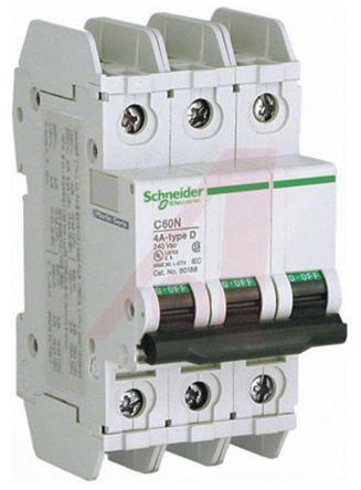 This is C60 MCB Mini Circuit Breaker 3P 15 A 20 kA rms @ 240 V ac Curve D manufactured by Schneider Electric. The manufacturer part number is 60195. The product has a current rating of 15 a. The product c60, is a highly preferred choice for users. Its accurate length is 107mm. Furthermore, the product is 54mm wide. The product comes in 78.5mm depth. It has equipped with 3 poles.