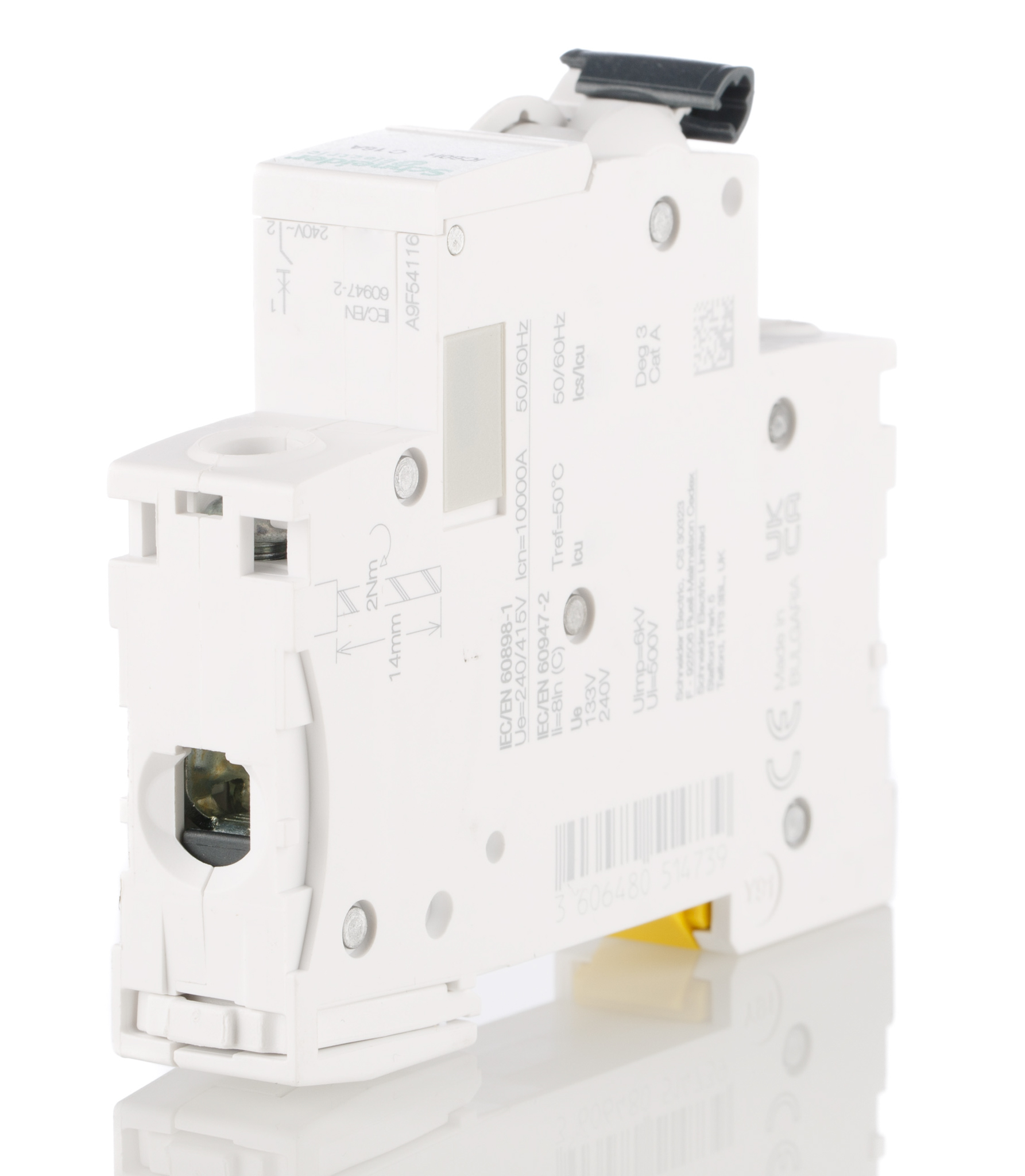 This is Acti 9 iC60H MCB Mini Circuit Breaker 1P 6 A 10 KA Curve C manufactured by Schneider Electric. The manufacturer part number is A9F54106. The product has a current rating of 6a. The product ic60h, is a highly preferred choice for users. Its accurate length is 85mm. Furthermore, the product is 18mm wide. The product comes in 78.5mm depth. It has equipped with 1p poles.