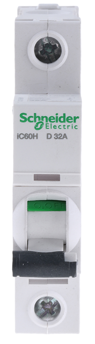 This is Acti 9 iC60H MCB Mini Circuit Breaker 1P 32 A 10 KA Curve D manufactured by Schneider Electric. The manufacturer part number is A9F55132. The product has a current rating of 32a. The product ic60h, is a highly preferred choice for users. Its accurate length is 85mm. Furthermore, the product is 18mm wide. The product comes in 78.5mm depth. It has equipped with 1p poles.