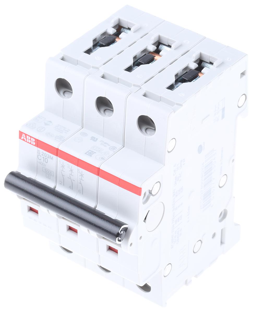 This is System M Pro 10A MCB Mini Circuit Breaker3P Curve C Breaking Capacity 10 kA manufactured by ABB. The manufacturer part number is 2CDS273001R0104 S203M-C10. The product has a current rating of 10a. The product s200m, is a highly preferred choice for users. The product comes in 76mm depth. It has equipped with 3p poles.