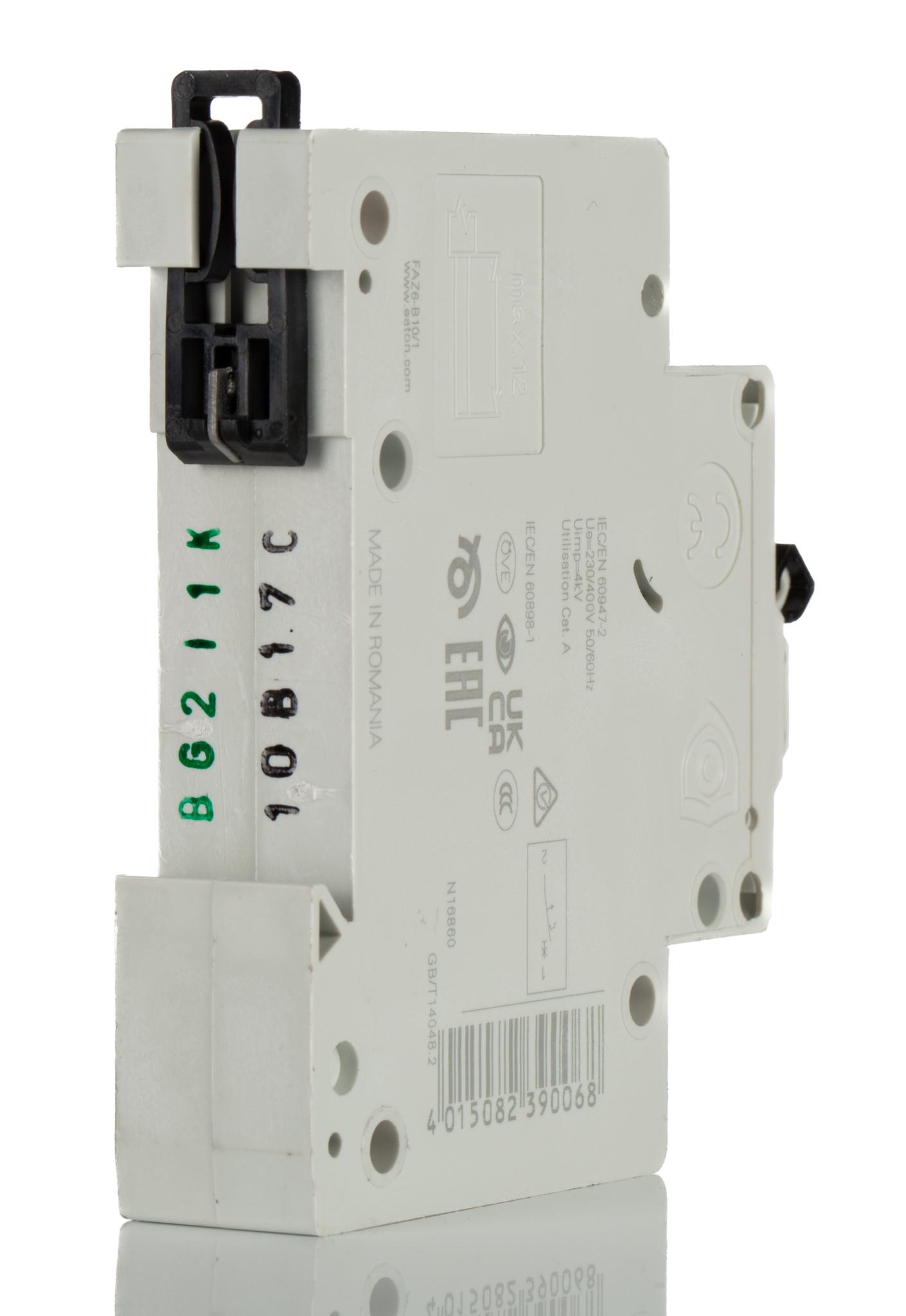 This is xEffect 10A MCB Mini Circuit Breaker1P Curve B Breaking Capacity 6 kA 230 → 400V manufactured by Eaton. The manufacturer part number is 239006 FAZ6-B10/1. The product has a current rating of 10a. The product eaton moeller, is a highly preferred choice for users. Its accurate length is 80mm. Furthermore, the product is 17.5mm wide. The product comes in 62mm depth. It has equipped with 1p poles.