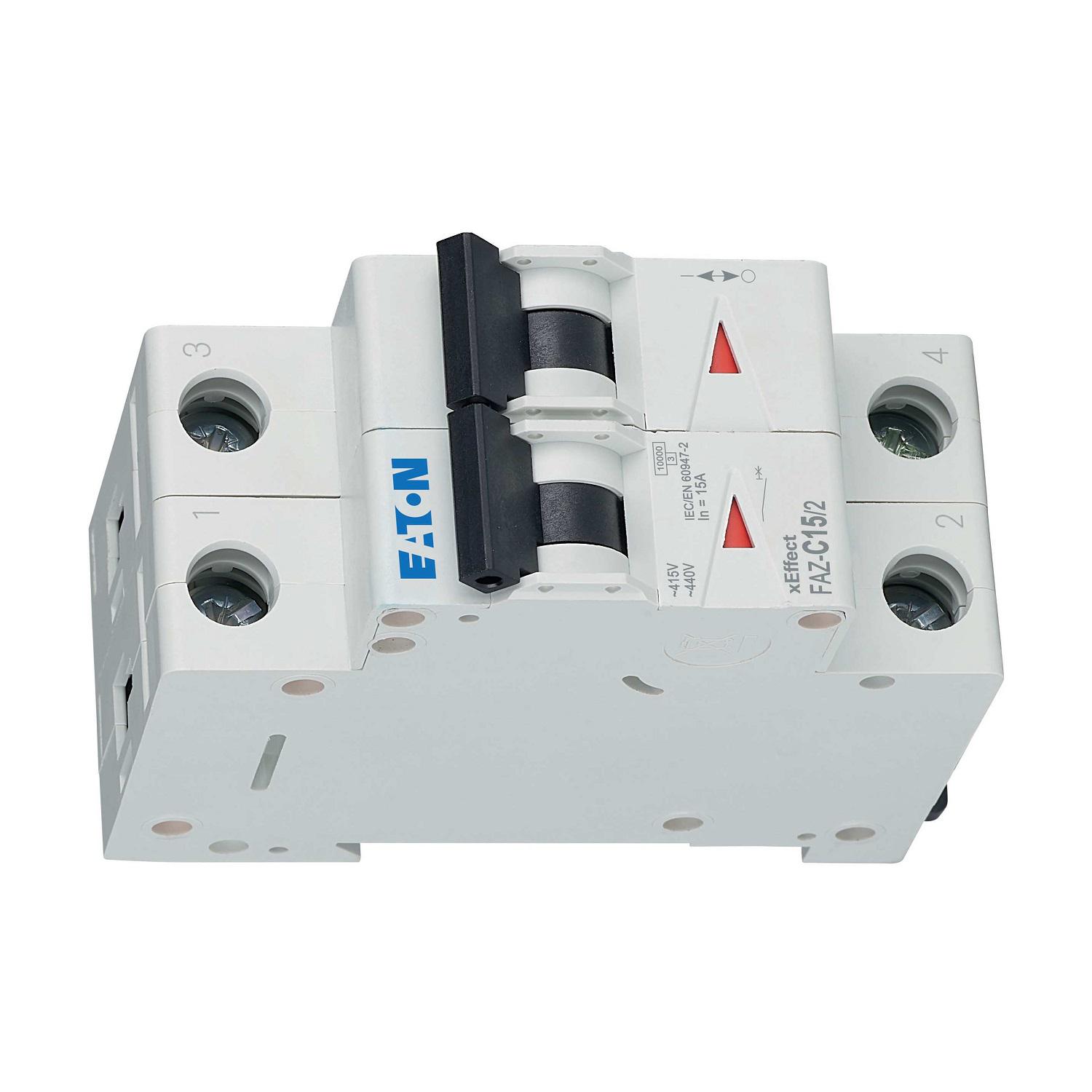 This is xEffect 15A MCB Mini Circuit Breaker2P Curve C Breaking Capacity 10 kA 240 → 415V manufactured by Eaton. The manufacturer part number is 278759 FAZ-C15/2. The product has a current rating of 15a. The product eaton moeller, is a highly preferred choice for users. Its accurate length is 80mm. Furthermore, the product is 36mm wide. The product comes in 80mm depth. It has equipped with 2p poles.