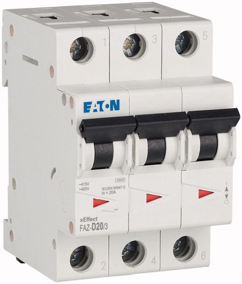 This is xEffect 20A MCB Mini Circuit Breaker3P Curve D Breaking Capacity 10 kA 240 → 415V manufactured by Eaton. The manufacturer part number is 278897 FAZ-D20/3. The product has a current rating of 20a. The product eaton moeller, is a highly preferred choice for users. Its accurate length is 54mm. Furthermore, the product is 85mm wide. The product comes in 73mm depth. It has equipped with 3p poles.