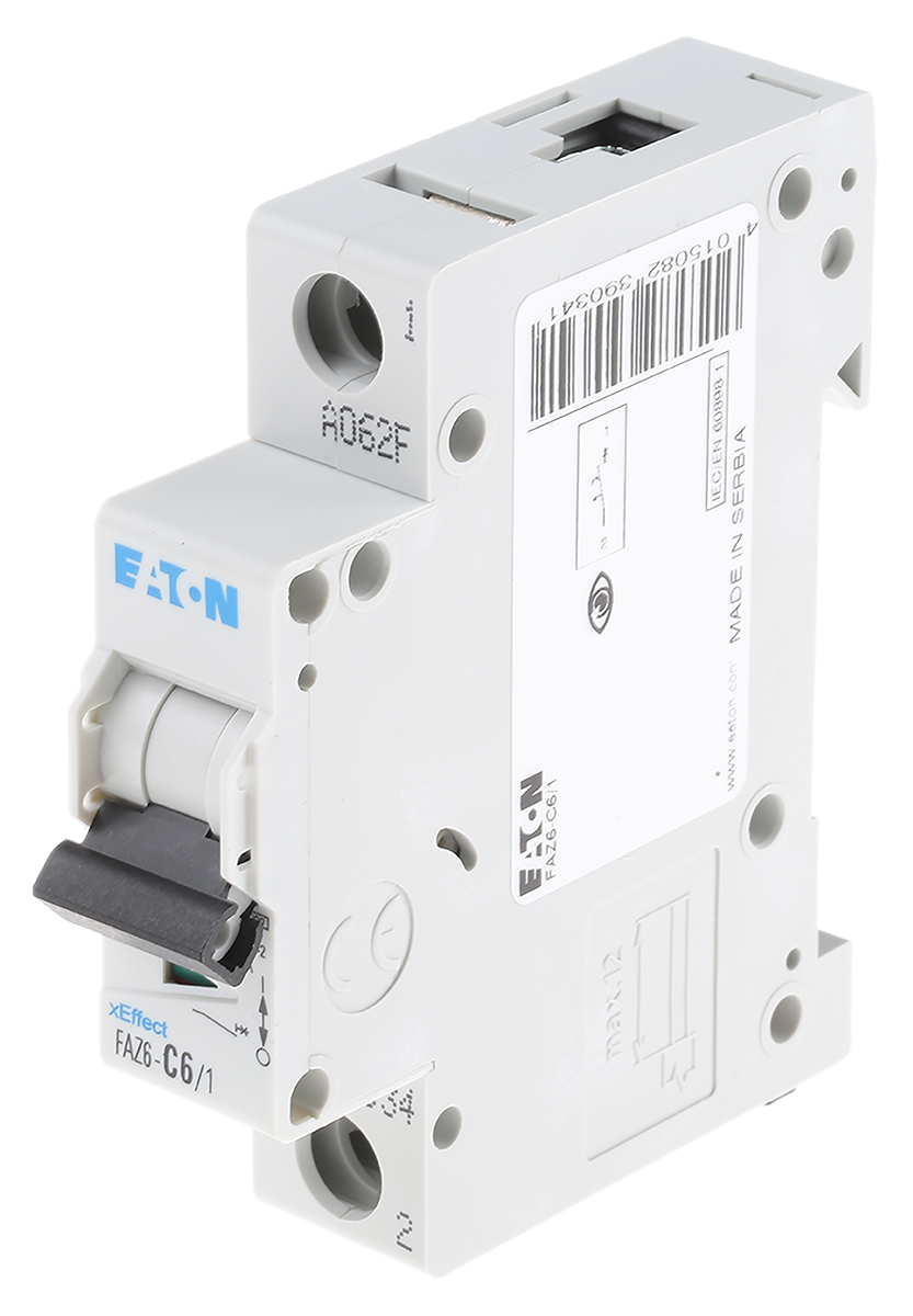 This is xEffect 6A MCB Mini Circuit Breaker1P Curve C Breaking Capacity 6 kA 230 → 400V manufactured by Eaton. The manufacturer part number is 239034 FAZ6-C6/1. The product has a current rating of 6a. The product eaton moeller, is a highly preferred choice for users. Its accurate length is 80mm. Furthermore, the product is 17.5mm wide. The product comes in 62mm depth. It has equipped with 1p poles.