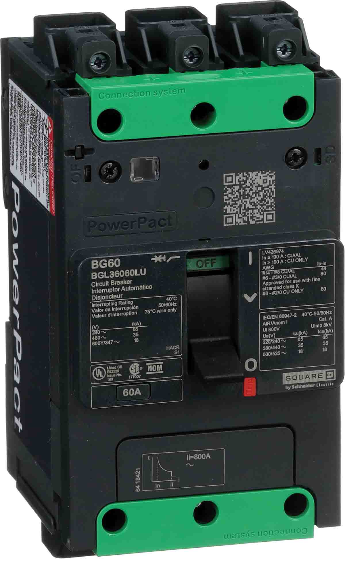 This is PowerPact MCCB 3P 60A manufactured by Schneider Electric. The manufacturer part number is BGL36060LU. The product has a current rating of 60a. The product bg, is a highly preferred choice for users. It has equipped with 3 poles.