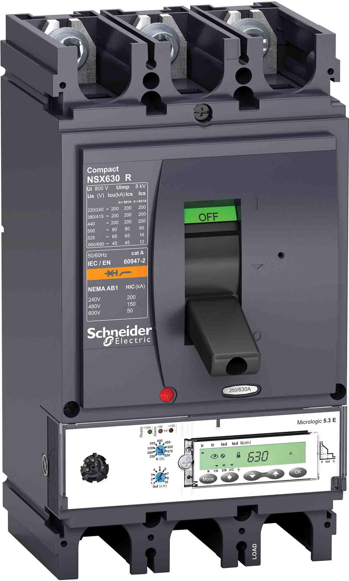 This is ComPact MCCB 3P 630A Fixed Mount manufactured by Schneider Electric. The manufacturer part number is LV433704. The product has a current rating of 630a. The product lv4, is a highly preferred choice for users. It has equipped with 3 poles.