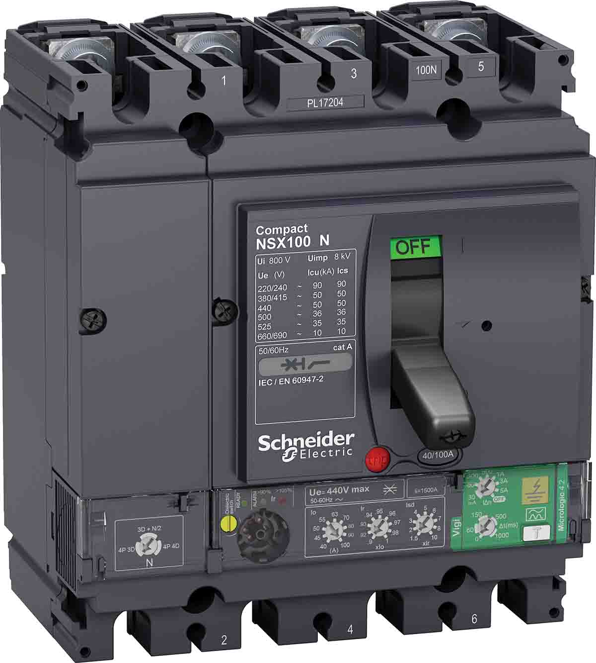 This is ComPact MCCB 4P 100A Fixed Mount manufactured by Schneider Electric. The manufacturer part number is LV433851. The product has a current rating of 100a. The product lv4, is a highly preferred choice for users. It has equipped with 4 poles.