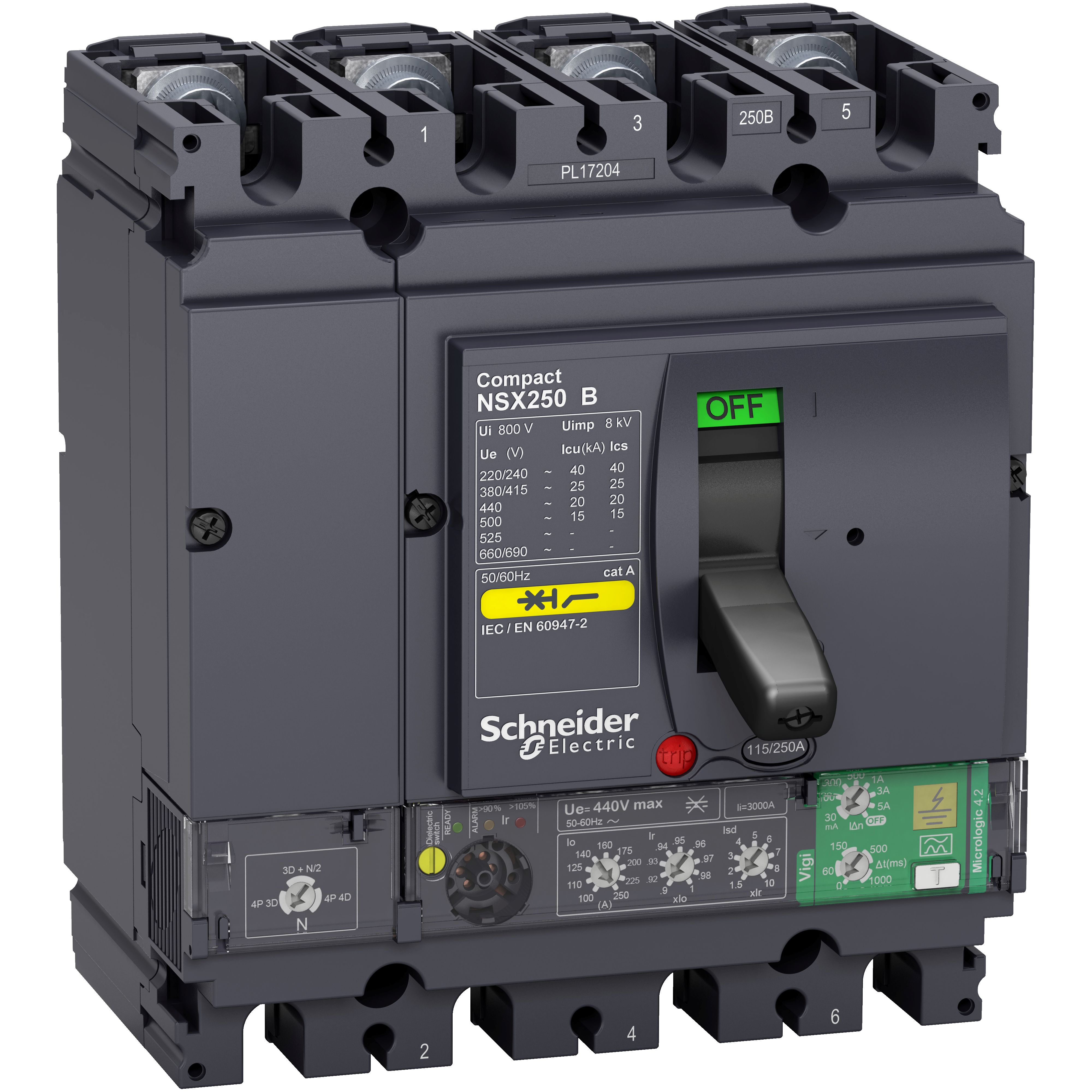 This is Compact MCCB 4P 250A Fixed Mount manufactured by Schneider Electric. The manufacturer part number is LV433824. The product has a current rating of 250a. The product nsx250b, is a highly preferred choice for users. It has equipped with 4 poles.