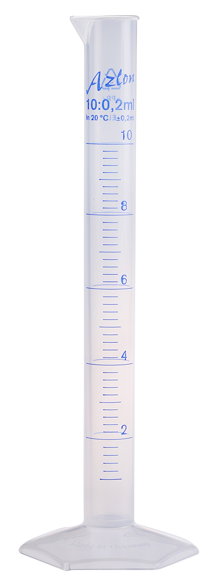 This is PP Graduated Cylinder 10mL manufactured by RS Pro. The manufacturer part number is 461-0831. Its accurate length is 140mm. The product is made from highly stable and reliable pp. The module has the capacity of 10ml.