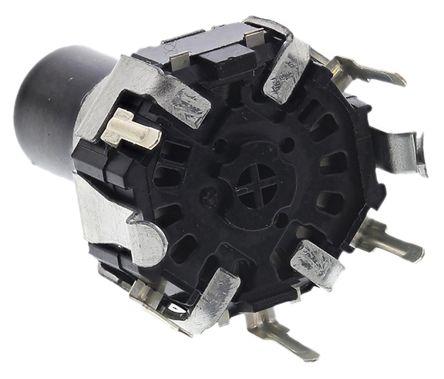 This is 15 Pulse Incremental Mechanical Rotary Encoder with a 5.975 mm Flat Shaft (Not Indexed) Through Hole manufactured by Alps Alpine. The manufacturer part number is EC12D1524406. The product is available in through hole configuration. The given diameter of mounting hole is 1.05 mm, 2.1 mm, 2.15 x 2.05 mm.