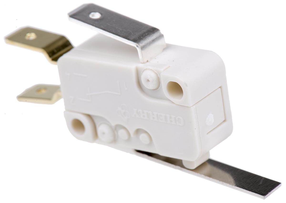 This is SPDT-NO/NC Short Lever Microswitch 16 A @ 250 V ac manufactured by ZF. The manufacturer part number is D45U-V3LD. It has a 0.49 n of operating force. Whereas, the minimum operating temperature of the product is -40°c. The product carries short lever actuator. It has a maximum operating temperature of +150°c. The terminal is a tab type. The product is made from sturdy silver alloy materials.