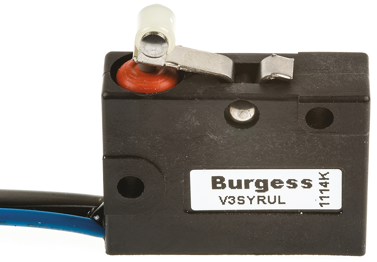 This is SP-NO/NC Short Roller Lever Microswitch 5 A @ 250 V ac manufactured by Saia-Burgess. The manufacturer part number is V3SYR-UL. It has a 3.9 n of operating force. Whereas, the minimum operating temperature of the product is -40°c. The product carries short roller lever actuator. The product also provide mechanical stability with 10^6operations. It carries a release force of 0.4n. It has a maximum operating temperature of +85°c. The terminal is a pre-wired type. The product is made from sturdy silver materials.