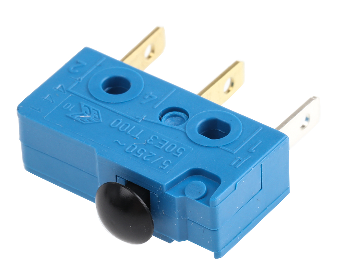 This is SPDT Mushroom Shaped Microswitch 5 A @ 250 V ac manufactured by Marquardt. The manufacturer part number is 1050.1202. It has a 1.5 n of operating force. Whereas, the minimum operating temperature of the product is -40°c. The product carries mushroom shaped actuator. The product is made from sturdy silver materials. The product also provide mechanical stability with 10000000cycles. It carries a release force of 0.5n. It has a maximum operating temperature of +100°c. The terminal is a tab type.