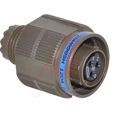 This is D38999 Series 3 Way Free Hanging MIL Spec Circular Connector Plug Socket ContactsShell Size 9 manufactured by Amphenol. The manufacturer part number is D38999/26WA98SN. The product d38999, is a highly preferred choice for users. The product has a current rating of 7.5 (size 20)a. The product is available in free hanging configuration. Moreover, the product has a nominal 600 v ac, 850 v dc voltage rating. The product contains 3 contacts. In addition, male is the available "Gender" of the product. The product also features robust aluminium housing material. It has a maximum operating temperature of +175°c.