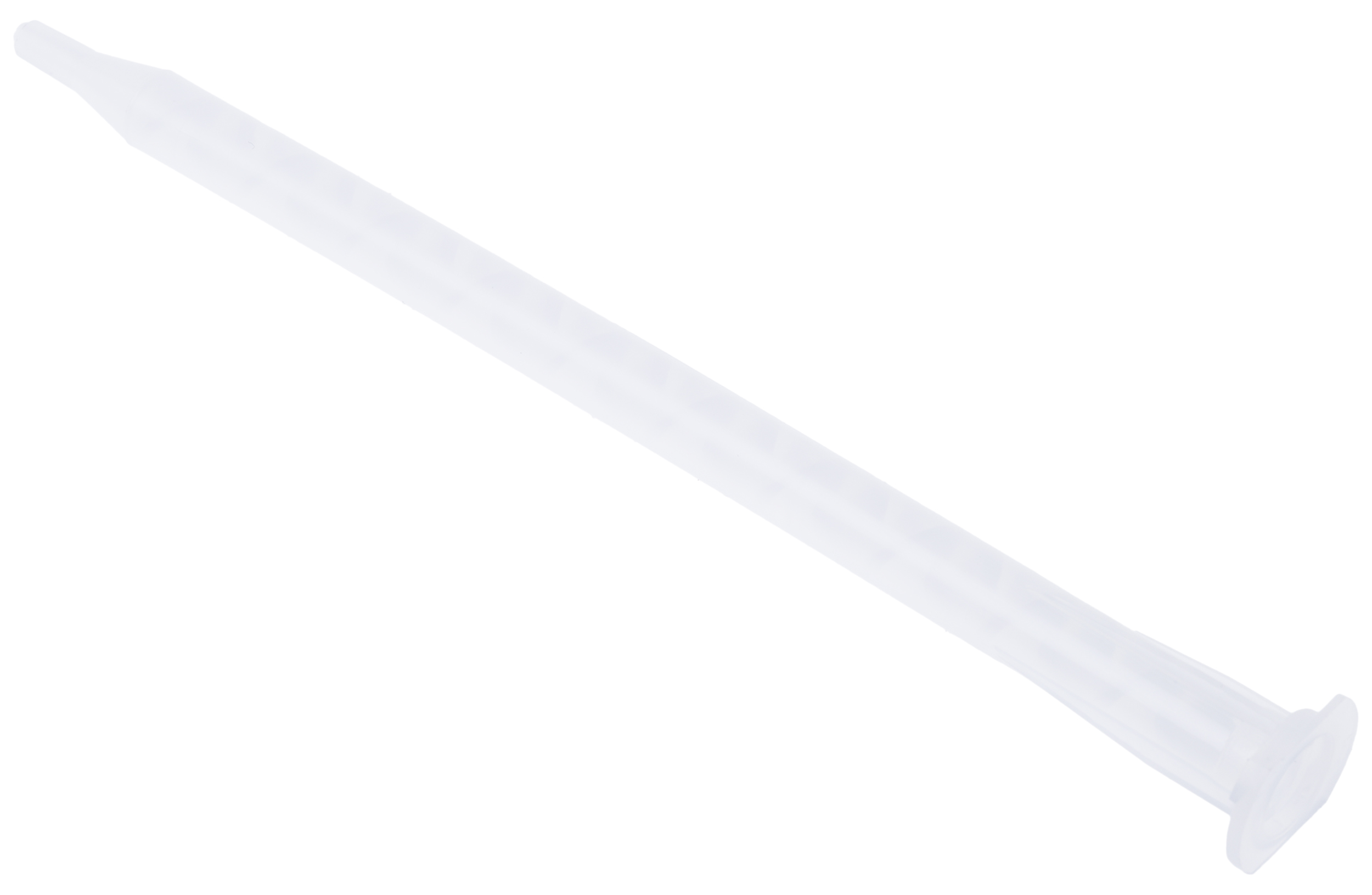 This is Epoxy Mixer Nozzle 50mL Bayonet 20 Mixing elements 5.9in manufactured by RS Pro. The manufacturer part number is 503-385. Its accurate length is 150mm.