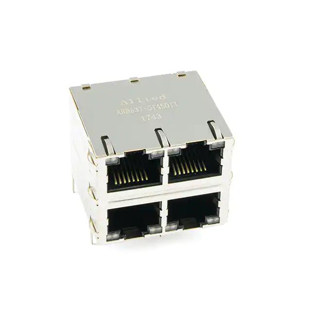 This is manufactured by Allied Components International. The manufacturer part number is ARB537-014501I. It is assigned with possible HTSUS value of 8536.69.4040. The product also features robust polybutylene terephthalate (pbt) housing material. The product consists 8 cores per jack. The product has -40°c ~ 85°c operating temperature range. It is 1.015" (25.79mm) high above board. The tab direction is configured at up and down. It has 6.00µin (0.152µm) of contact finishing thickness. Furthermore, the product is shielded with shielded, emi finger. In addition, it is reach info available upon request. The product is widely employed in 10/100/1000 base-t. It comes in 2 of rows. It is shipped in tray. rj45 Connector type offer robust functionality. Furthermore, the product is galvanized with excellent gold contact finishing. Its typical moisture sensitivity level is 1 (unlimited). This product features 4 number of ports. The product features solder termination style. The product has a 90° angle (right) orientation. The splendid features of the product include board lock. The product is available in through hole configuration. The colour options for LED include green, yellow - green, yellow. The product is shielded with a robust copper alloy shield materials. The product is made from sturdy copper alloy materials. The product is designated with the ear99 code number
