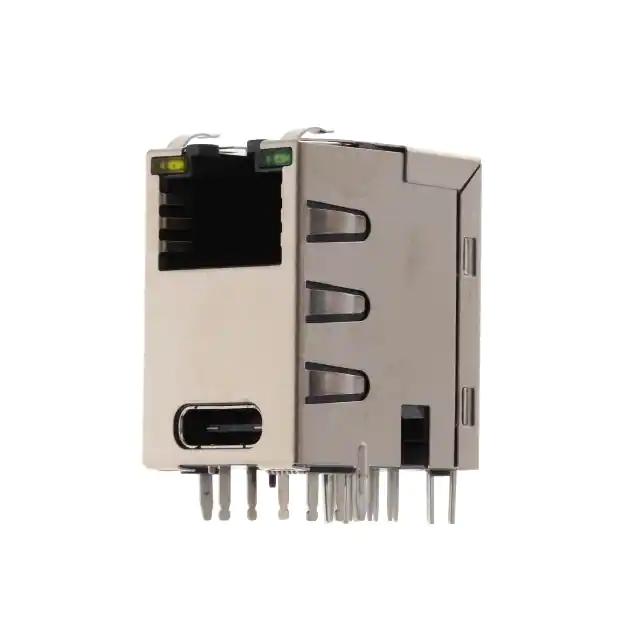 This is manufactured by Amphenol ICC (Commercial Products). The manufacturer part number is RJE4E1881411. It is rated with cat5e. It is assigned with possible HTSUS value of 8536.69.4040. The product is rohs compliant. The product also features robust thermoplastic housing material. The product has -40°c ~ 85°c operating temperature range. The tab direction is configured at up. It has 50.0µin (1.27µm) of contact finishing thickness. Furthermore, the product is shielded with shielded, emi finger. The product consists of 8p8c (rj45, ethernet) positions or contacts. It comes in 2 of rows. It is shipped in tray. jack with usb c Connector type offer robust functionality. Furthermore, the product is galvanized with excellent gold contact finishing. Its typical moisture sensitivity level is 1 (unlimited). This product features 1 number of ports. The product features solder termination style. It has a long 10 weeks standard lead time. The product has a 90° angle (right) orientation. The product is available in through hole configuration. The product rje4e, is a highly preferred choice for users. The colour options for LED include yellow - green. The product is made from sturdy phosphor bronze materials. Moreover, it corresponds to rje4e188, a base product number of the product. The product is designated with the ear99 code number