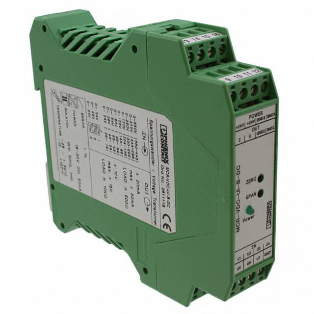 This is manufactured by Phoenix Contact. The manufacturer part number is 2811116. It is assigned with possible HTSUS value of 9030.33.3400. The product is rohs compliant. Moreover, it has spring terminal terminal style. The product has -25°c ~ 50°c operating temperature range. It is approved by ce, culus. It comes in dc voltage transducer configuration. Typical input range of ±660vdc. It responds within 12ms. It is shipped in bulk. Features a 660vac (working), 1500vac (test) isolation. Its typical moisture sensitivity level is 1 (unlimited). Moreover, the product allow the output of ±10vdc, ±20ma. The product is available in din rail configuration. The product mcr, is a highly preferred choice for users. It has optimum voltage supply of 18.5 ~ 30.2vdc. The product is designated with the ear99 code number