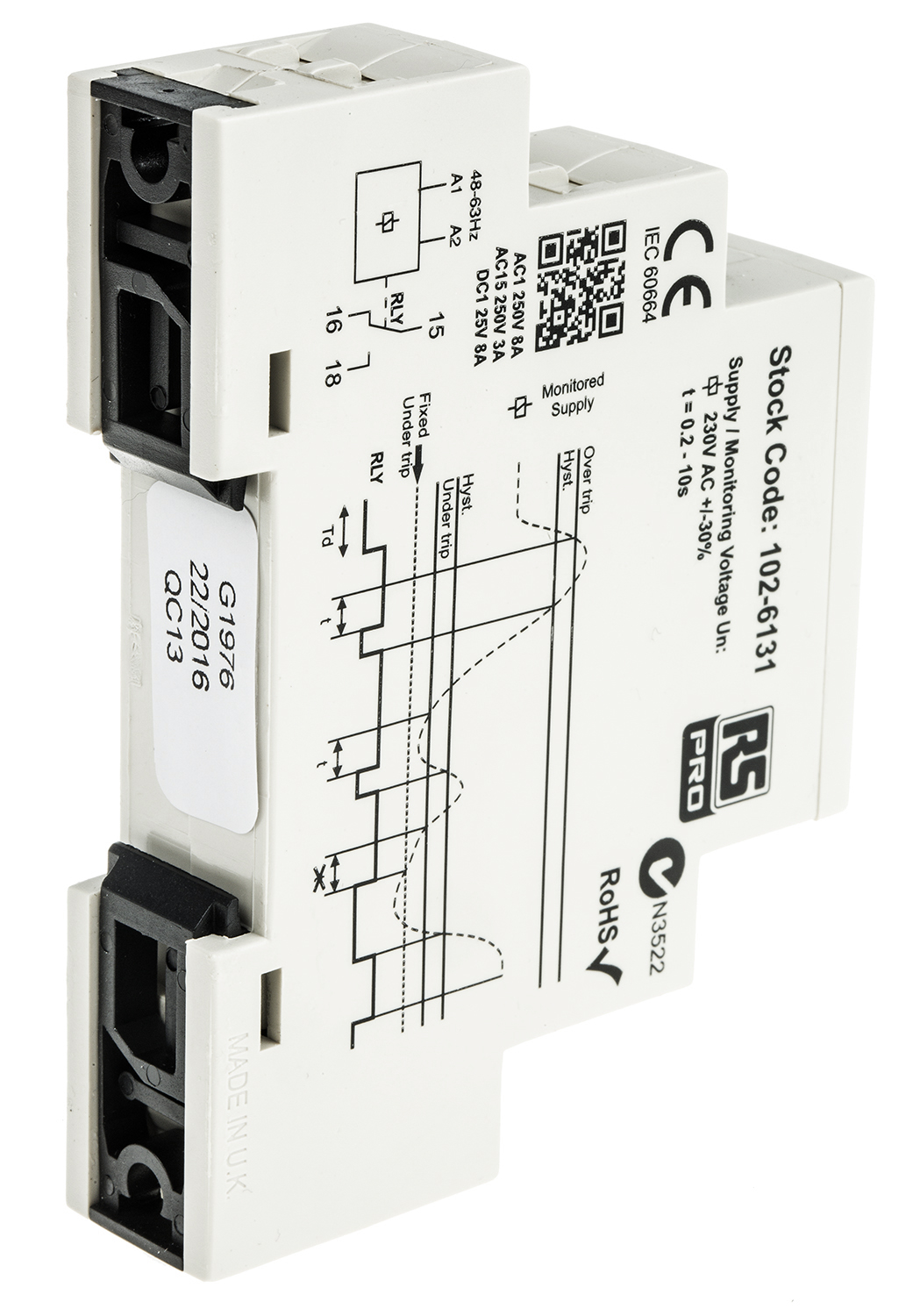 This is Voltage Multi timer with SPDT Contacts 1 Phase 230 V ac manufactured by RS Pro. The manufacturer part number is 102-6131. It has a maximum operating temperature of +60°c. The given dimensions of the product include 17.5 x 66.5 x 89mm. The product is available in din rail configuration. The product l, is a highly preferred choice for users. In addition, the height is 89mm. Furthermore, the product is 17.5mm wide. Its accurate length is 66.5mm. Whereas, the minimum operating temperature of the product is -20°c. It has equipped with 1 poles. The terminal is a screw type.