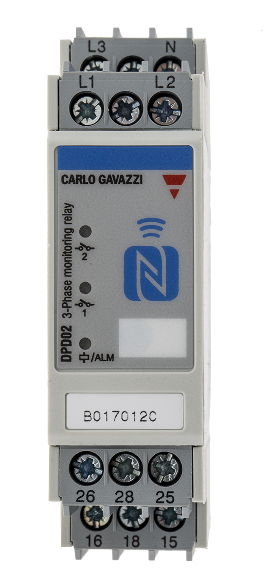 This is Frequency Phase Voltage Monitoring Relay SPDT NFC 3 Phase 166 → 576 V manufactured by Carlo Gavazzi. The manufacturer part number is DPD02DM44. The given dimensions of the product include 99.5 x 22.5 x 84mm. Furthermore, the product is 22.5mm wide. It has a maximum operating temperature of +60°c. The terminal is a screw type. Its accurate length is 99.5mm. The product is available in din rail configuration. The product dpd, is a highly preferred choice for users. In addition, the height is 84mm. Whereas, the minimum operating temperature of the product is -20°c. It has equipped with 1 poles.