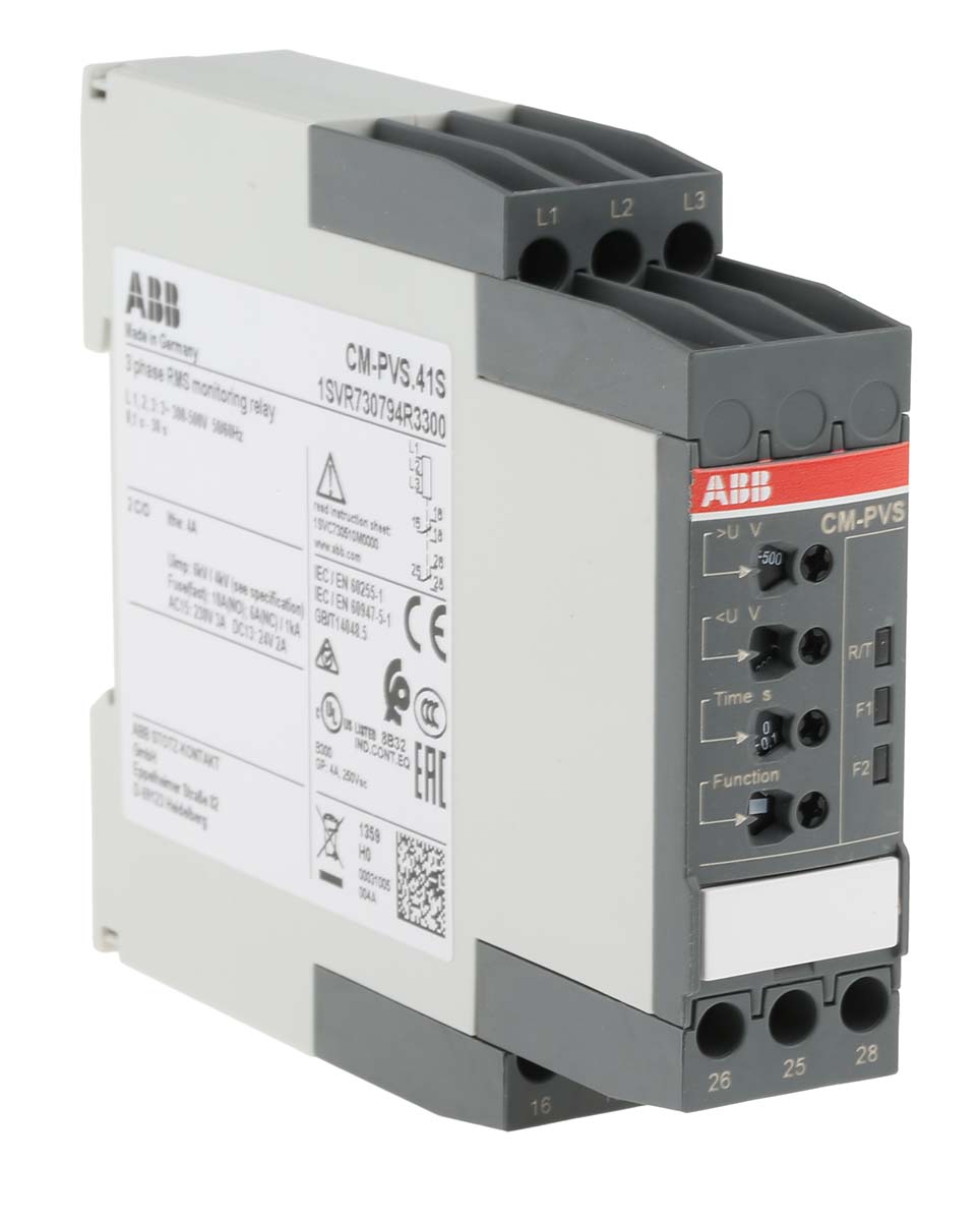 This is Phase Voltage Monitoring Relay With DPDT Contacts 3 Phase Overvoltage Undervoltage manufactured by ABB. The manufacturer part number is 1SVR730794R3300 CM-PVS.41S. The given dimensions of the product include 103.7 x 22.5 x 85.6mm. The product is available in din rail configuration. The product cm-pvs, is a highly preferred choice for users. In addition, the height is 85.6mm. Furthermore, the product is 22.5mm wide. Its accurate length is 103.7mm. Whereas, the minimum operating temperature of the product is -25°c. It has a maximum operating temperature of +60°c. The terminal is a screw type.
