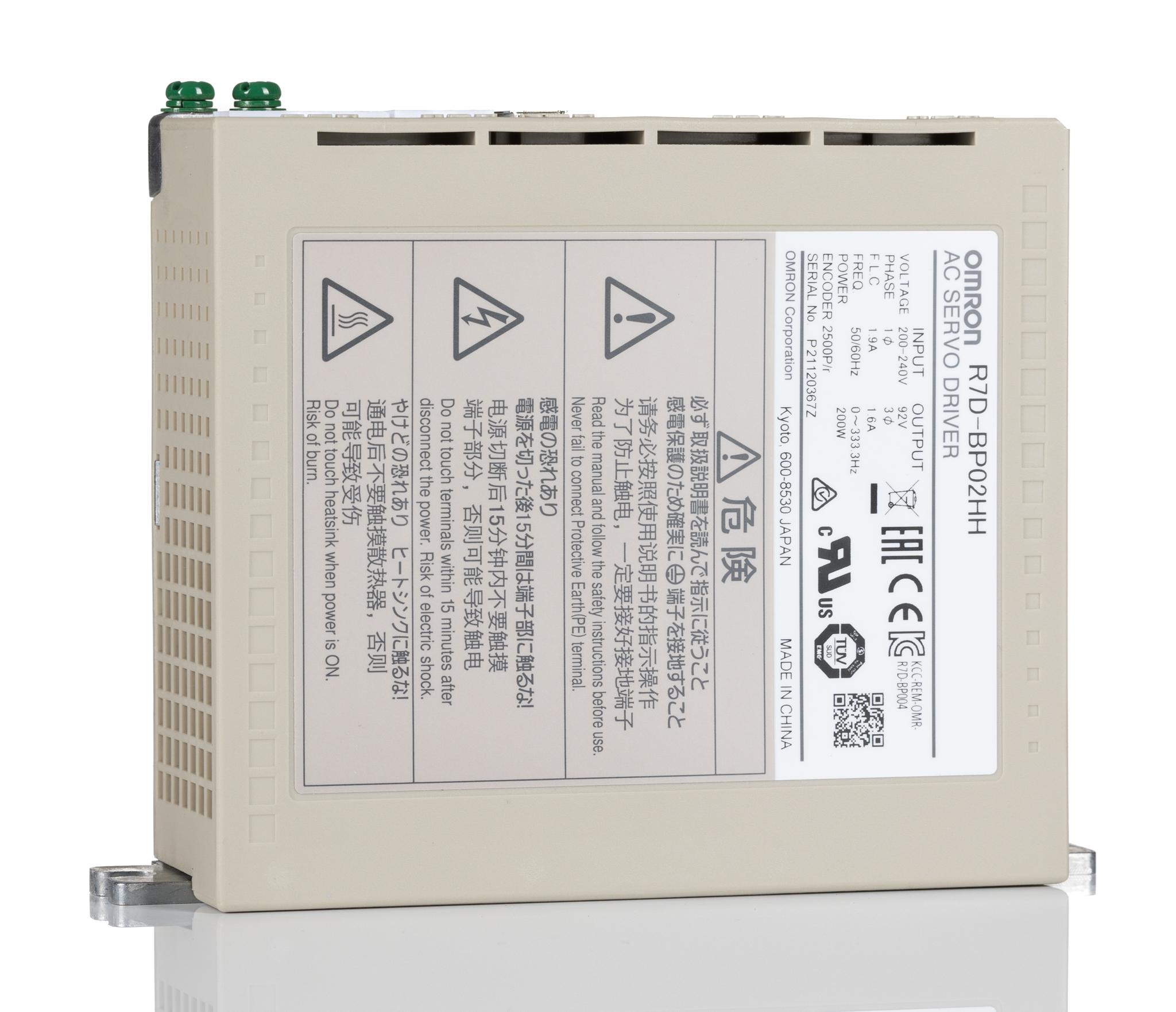 This is 200 W Servo Drive 4.9 A 200 V ac 0 → +55 °C manufactured by Omron. The manufacturer part number is R7D-BP02HH. The product has a current rating of 4.9 a. Moreover, the product has a nominal 200 v ac voltage rating. Whereas, the minimum operating temperature of the product is 0°c. It has a maximum operating temperature of +55°c.