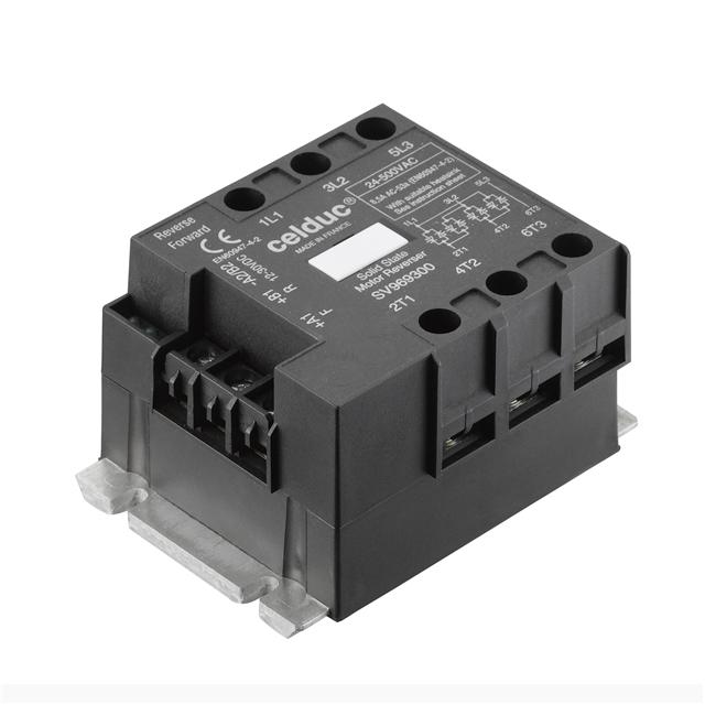 This is manufactured by Celduc Inc.. The manufacturer part number is SV969500E. It is assigned with possible HTSUS value of 8536.49.0080. The product is rohs compliant. The product has -40°c ~ 100°c operating temperature range. The product is available in chassis mount configuration. This high-efficiency motor is a ac motor. It comes in module configuration. While, the output current includes 16a. The given watts of the product include 7500 w. Furthermore, it is a type of motor starter, reversible Control/Drive type. It is shipped in box. Its typical moisture sensitivity level is 1 (unlimited). It has a long 28 weeks standard lead time. The given load voltage is 24 ~ 550v. It has optimum voltage supply of 12 ~ 30vdc. The product consists of 1 motors. The product is designated with the ear99 code number