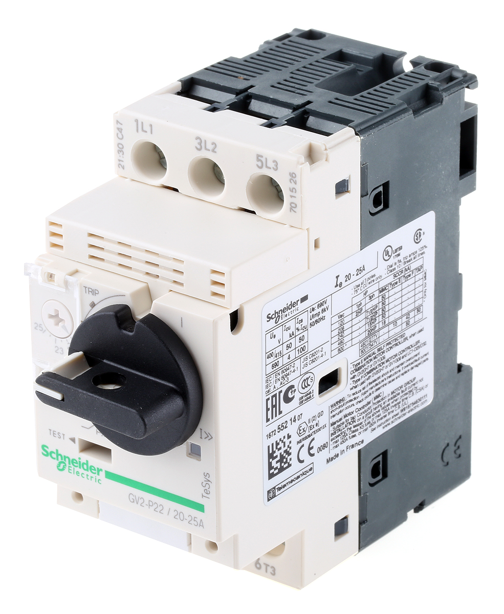 This is TeSys 690 V Motor Protection Circuit Breaker 3P Channels 20 → 25 A 4 kA manufactured by Schneider Electric. The manufacturer part number is GV2P22. The product has a current rating of 20 → 25 a. The product gv2p, is a highly preferred choice for users.