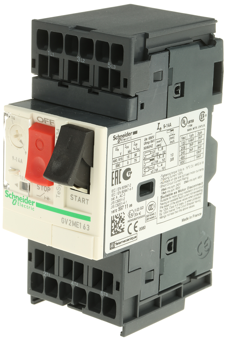 This is TeSys 500 V Motor Protection Circuit Breaker 3P Channels 9 → 14 A 6 kA manufactured by Schneider Electric. The manufacturer part number is GV2ME163. The product has a current rating of 9 → 14 a. The product gv2m, is a highly preferred choice for users.