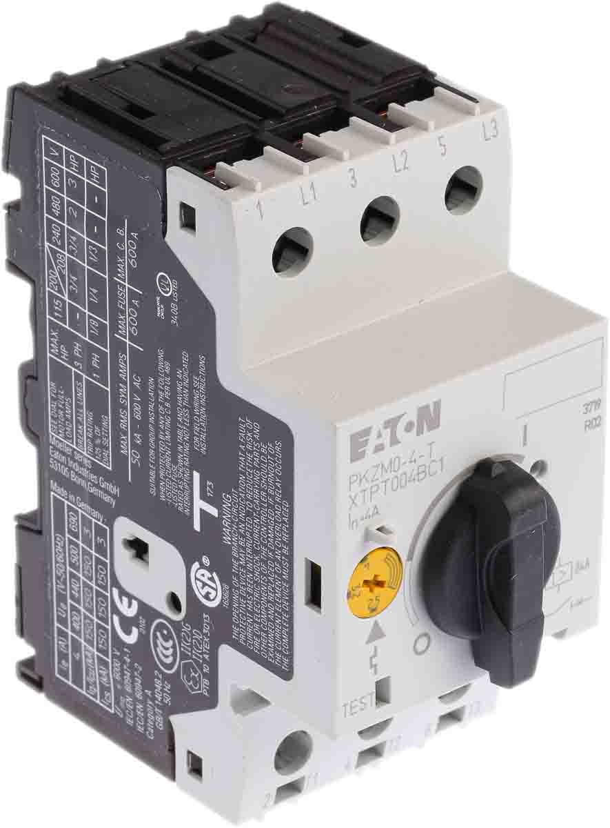 This is 2.5 → 4 A Motor Protection Circuit Breaker 690 V ac manufactured by Eaton. The manufacturer part number is 088914 PKZM0-4-T. The product has a current rating of 2.5 → 4 a. The product eaton moeller, is a highly preferred choice for users.