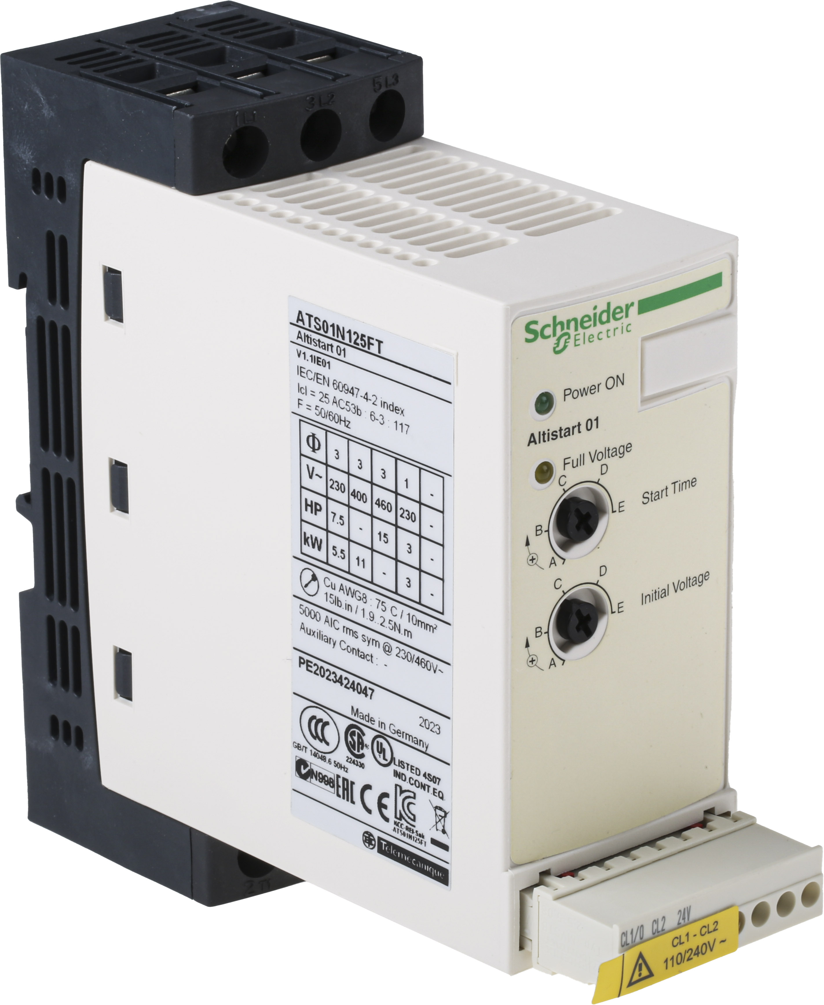 This is 25 A Soft Start ATS01 Series IP20 11 kW 110 → 480 V manufactured by Schneider Electric. The manufacturer part number is ATS01N125FT. The product has a current rating of 25 a. The product ats01, is a highly preferred choice for users. Moreover, the product has a nominal 110 → 480 v ac voltage rating.